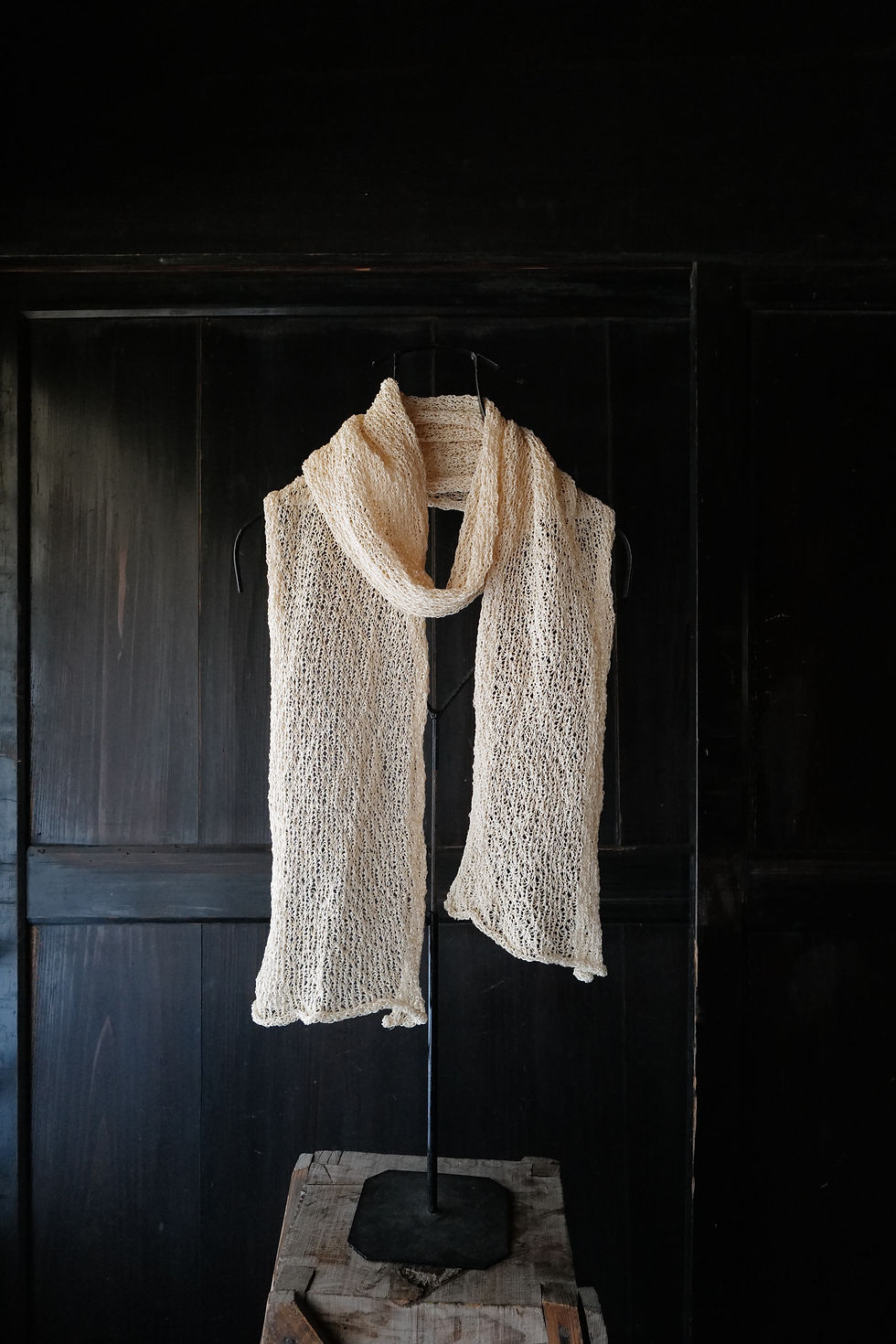 Original hand-knitted & hand-dyed indigo wooden scarf